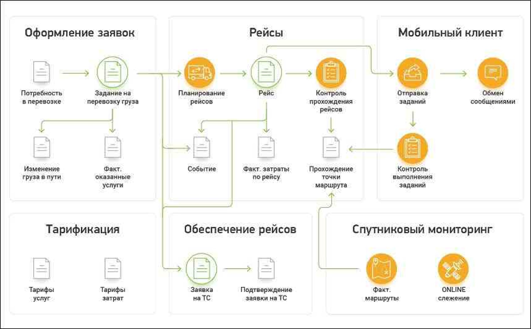 ∙ управление потребностями в перевозке грузов;